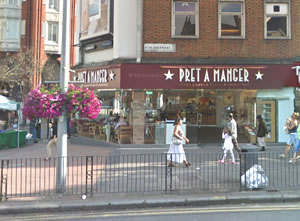 As she walked by Pret a Manger she was knocked to the ground by a woman running along the pavement. This woman stopped for a second then ran off.