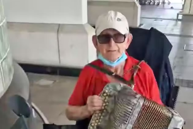 Thomas O'Halloran busking outside Perivale station. Picture: Facebook