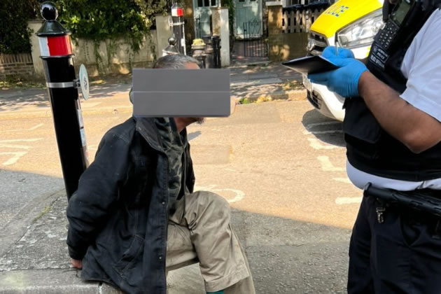 Police deal with street drinker in centre of Hanwell. Picture: Ealing Police