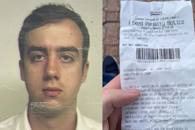 Alex McLeod (left) and the Fixed Penalty Notice he received . Picture: GB News