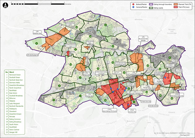 A map has been published showing details of how Ealing Council hopes to increase the number of Low Traffic Neighbourhood Schemes across the borough.