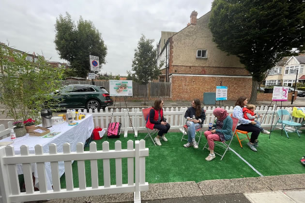 Three parking spaces outside Little Ealing Primary School were converted into a parklet this Wednesday (21 September) as part of a campaign for safer streets.