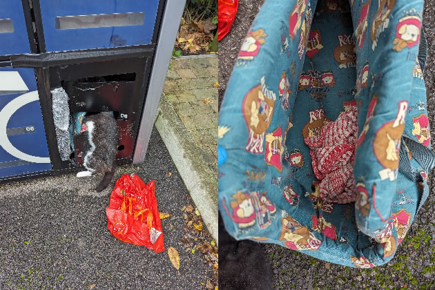 The cat in the locker (left) and the dog bed found at the same time (right). Picture: RSPCA
