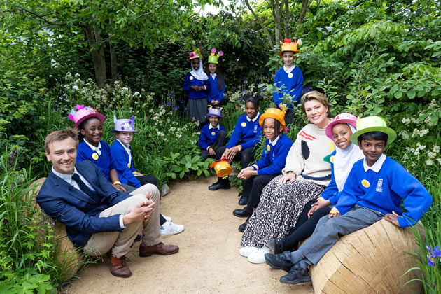 Pupils from Viking Primary School in London joined broadcaster and author Kate Silverton at the Place2Be Securing Tomorrow Garden at the flower show to celebrate their new garden.