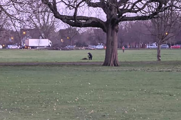 Man believed to be undertaking controlled explosion on Ealing Common. Picture: Facebook/Justine Sullivan