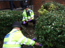 All grass verges, bushes, overgrown areas, alleyways and stair cases were searched for weapons. Also on hand were the Ealing Homes ASB team who helped in the search and handed outs leaflets to the community informing them what was happening.