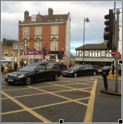 The procession has this morning made its way past the Hanwell Clock Tower - a focal point for community grief.