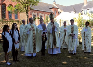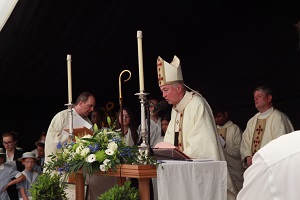 After visiting the Chapel and seeing the exhibit ‘A Stitch in Time’ the Cardinal gathered with the concelebrating priests and deacon and processed into the grounds where a marquee had been raised for the Mass.