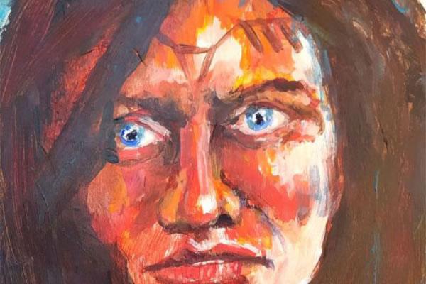 The painter, harpist and singer will present ‘Fire in the Head’ in the gallery next to where her studio is created.