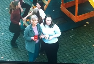 The children in the playground were rushed indoors and many social media commentators have remarked upon the teacher's ability to not spill their cups of tea amidst the panic.