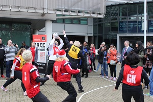 The London Mayor enjoyed a game of netball after meeting students in Ealing.