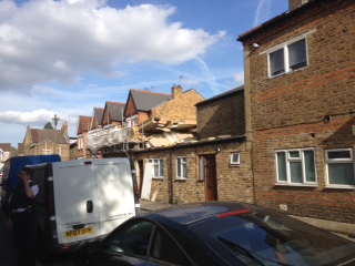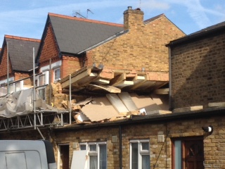 The top floor of the terraced house on Hatfield Road in W13 - believed to have been illegally converted - was being demolished when it collapsed onto the flat below.