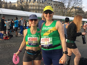 My friend Beverley had signed up to Paris to run with me and suport me. Beverley and I had a plan to run 5 mins and walk 1.30mins. We stuck to this regime throughout and it got us round. We had to be very disciplined to stick to the times, especially at the beginning when we were walking on fresh legs and that went against the grain. But the plan worked and we achieved a not too shabby time.