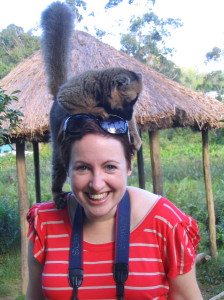 Cathy Winston (with lemur), finalist in blogging competition