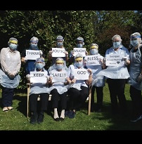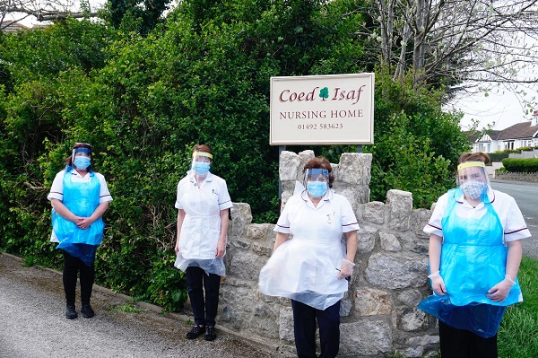 Staff at a care home in North Wales, wearing St Benedict's PPE