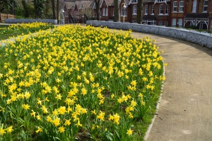 Northfields Conservative Councillor, David Millican sent in these cheery images of the daffodils in full glory at Bramley Gardens next to The Log Cabin, Northfield Avenue .