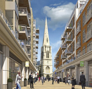 An upmarket boulevard lined with luxury apartments and top range shops - that's the vision of Dickens Yard in Ealing's centre from developers St George.
