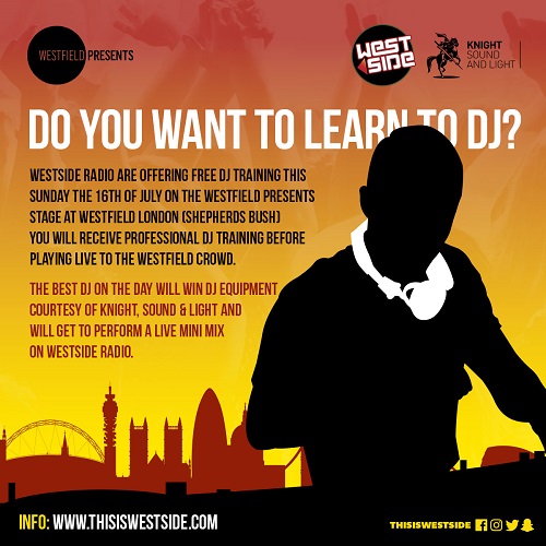On Sunday the 16th of July, Westside Radio alongside Westfield Presents will be offering FREE DJ training at Westfield London (Shepherds Bush).