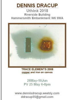 Dennis Dracup says: '' I am showing my own work in the same space as my father this time. A bit 'chalk and cheese' but the connections are there -apart from being his son - I used to accompany my father down to the Grand Union Canal with a barrow to collect scrap that he would turn into useful objects. In my installation I'm collecting iron from the foreshore at Hammersmith to be rusted onto paper as an ongoing process during the exhibition. So there must have been an influence there...''