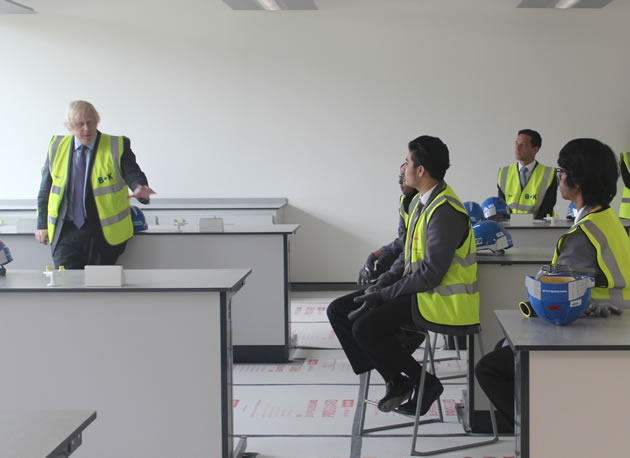Boris Johnson talks to pupils at Ealing Fields school