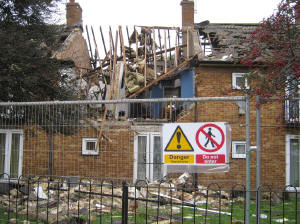 The blast caused debris from the flat to fly across the road - some of the roof tiles reached as far as the playground structure on the Clayponds estate. Local residents say it was a miracle nobody was killed.