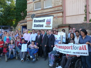 Nearly 70 campaigners gathered outside Hanwell Station on Thursday (29 August) to press Crossrail to provide step-free access at Hanwell Station when the service starts in 2018/19.