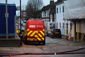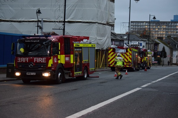 London Fire Brigade say around 40 firefighters tackled a blaze in the building which was under refurbishment which housed a shop with flats above.