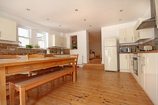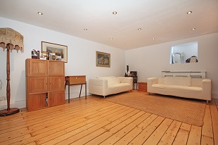 There are five bedrooms and four bathrooms on the upper levels and the lower ground floor level has a large kitchen which opens up to two reception rooms.