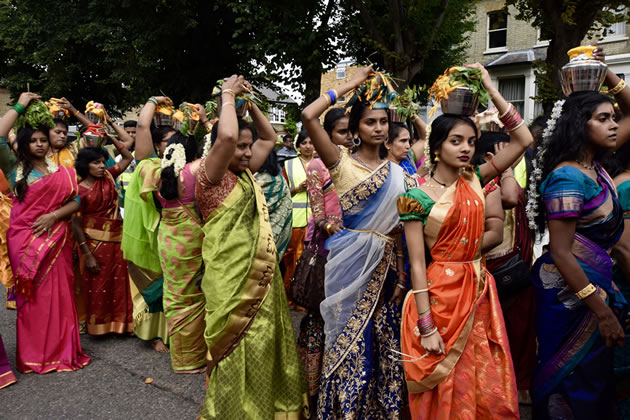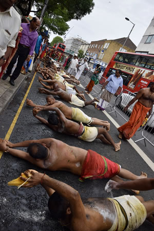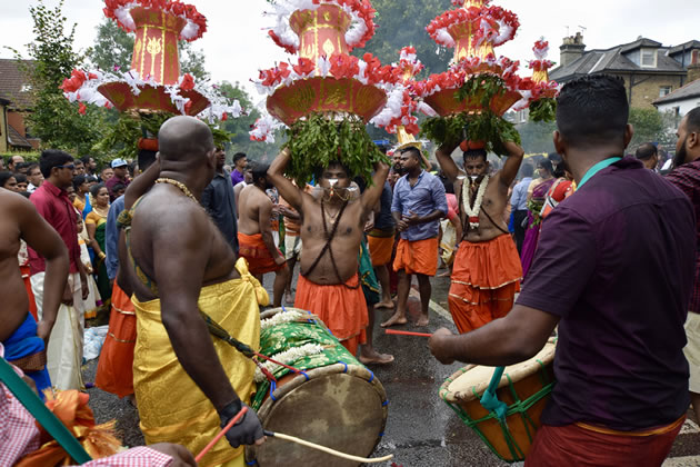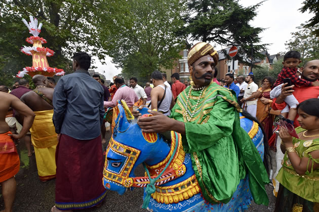 The event which is organised by the Shri Kanaga Thurkkai Amman Temple brings in visitors from across the world, both pilgrims and interested observers. Starting at the Temple on Chapel Road it made its way along the Uxbridge Road before returning to its base.