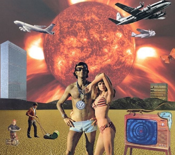 ‘Lost & Found’ refers to Joe’s creative process – finding long-lost images and reinventing them as often politically charged artworks – and Joe’s reinvention from the commercial world of work to finding his way as an artist. An art college graduate working in graphic design, he turned to handmade collage as an “analogue escape” from computers.