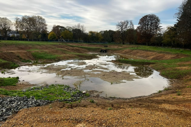 A new drainage pond in Lammas Park.