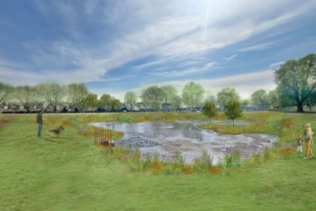 A visualisation of what one of the ponds will look like on completion. Picture: Ealing Council