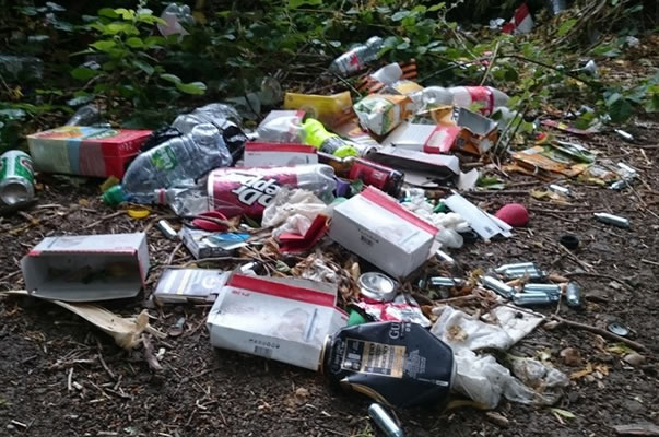 Nicola Gaughan stumbled across massive quantities of rubbish left by drinkers in woodland between the cricket pitch and the River Brent.