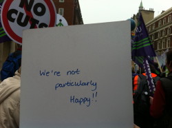 There was a huge UNISON, UNITE and GMB presence with branches from as far away as the Shetlands. Teachers, nurses, librarians, council workers, medical staff, youth workers, firefighters, coast guards, students, pensioners, social workers and civil servants all joined to make common cause against the fiscal decisions made by the coalition government. The rally in Hyde Park following the march was well organised and interesting. Big screens allowed everyone to see the speakers quite clearly and Len McCluskey (UNITE), Denise Marshall (CEO, Eaves Housing Association) and Mark Serwotka (CPS), amongst others, all made good speeches. Marshall made the point that it's the not the size of the society we live in, it's the level of civilisation within it that's important.