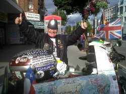 The sixty-nine year old from Minsk in Belarus, is on the last part of a ten year world-wide tour. He's hoping to get into the Guinness book of records as the first deaf mute to travel the world by motorbike.
