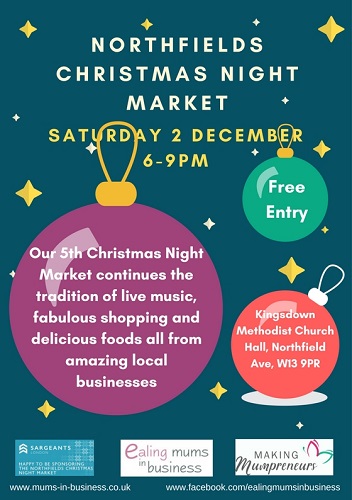 The Northfields Night Market is free to attend and takes place on Saturday 2 December at Kingsdown Methodist Church, Ealing W13 9PR between 6 - 9pm.