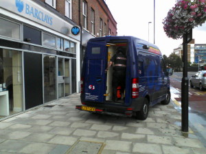 '' My heart sank today when I found a G4S security truck (LT57 GFV) parked up on the pavement outside Barclay’s Bank in South Ealing. Especially following the article on Ealing Today which detailed a similar event with some signwriters. Barclays Bank in South Ealing clearly does not like either our nice new pavements or Boris Johnson (who I understand paid for them) or perhaps both. Or perhaps it simply is another bank that does not care about the local community.''