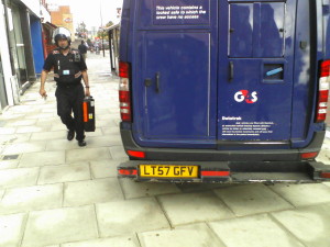 There was anger last month when sign writers for Barclays Bank used the newly refurbished pavements of South Ealing for parking, now it seems security vans feel they can do the same thing.