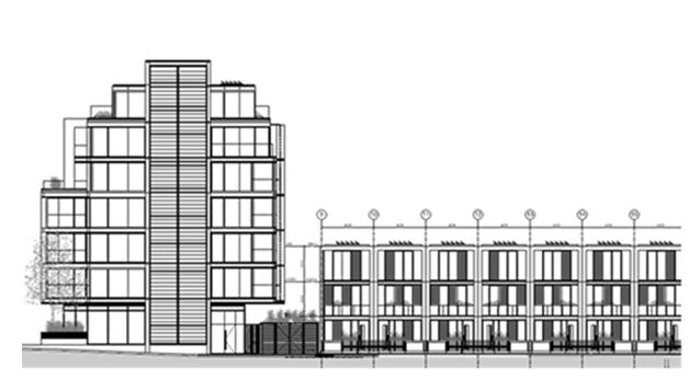 The application, by developer Elemento, is for 7 contemporary town houses and an ultra- modern, soaring block of flats with, as yet unspecified, retail units on the ground floor.
