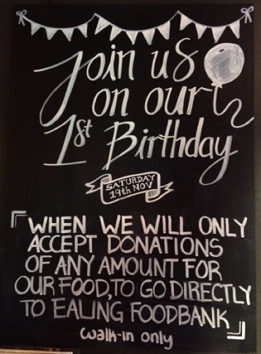 An Ealing restaurant is celebrating its first birthday in a very generous and charitable manner.