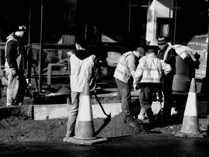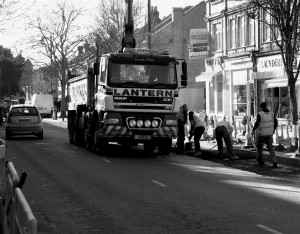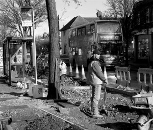 Local resident and artist Basil Wynbergen (website here : http://atelierbw.co.uk/) has been charting the progress and sent Ealing Today.co.uk these atmospheric images of the Pitshanger Lane and the men at work there.