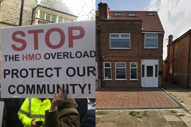 An earlier protest against HMOs in Perivale (left). The house in Wyresdale Crescent. Picture: Google Streetivew