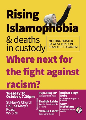 An anti racism group's holding a public meeting in Ealing to highlight increasing incidences of 'Islamaphobia'.