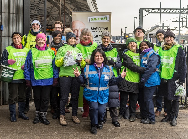 Samaritans join forces with station staff to try and cheer up the Monday commute