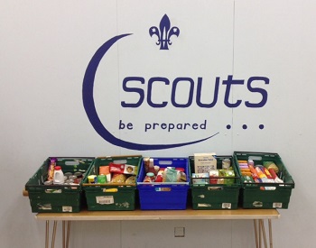 Young people and parents from 8th Ealing Scout group in Popes Lane, have collected together five crates of food that will be donated to the Ealing food bank based in Acton.