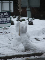 This snow 'teddy' is from the Argyle Road/Cleveland Roundabout and was sent in by Surrinder Sangha.