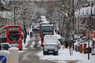 Bus chaos on Greenford Avenue Hanwell yesterday (Declan Devine)