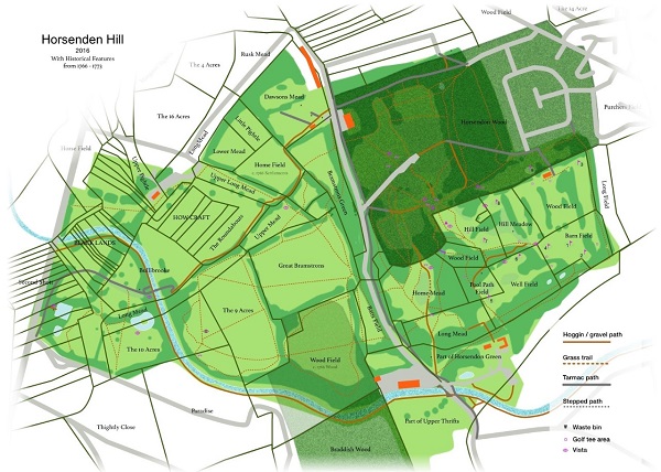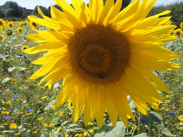 where the sunflowers are is Horsenden West ''The 9 Acres'' and it is surrounded by hedges with one viewpoint that is marked with a small purple eye.
