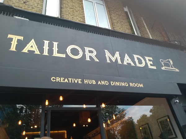 Tailor Made on Churchfield Road in Acton describes itself as dining room and 'creative hub' and although not a huge venue it's carefully designed and first impressions are that it wouldn't look amiss somewhere in central London.
