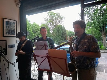Pared down to Jonny Palmer, singer/bass, Paul Viski on guitar and Yosi Marshall on Saxophone and Flute, this talented trio played a great selection of tunes, familiar to all.